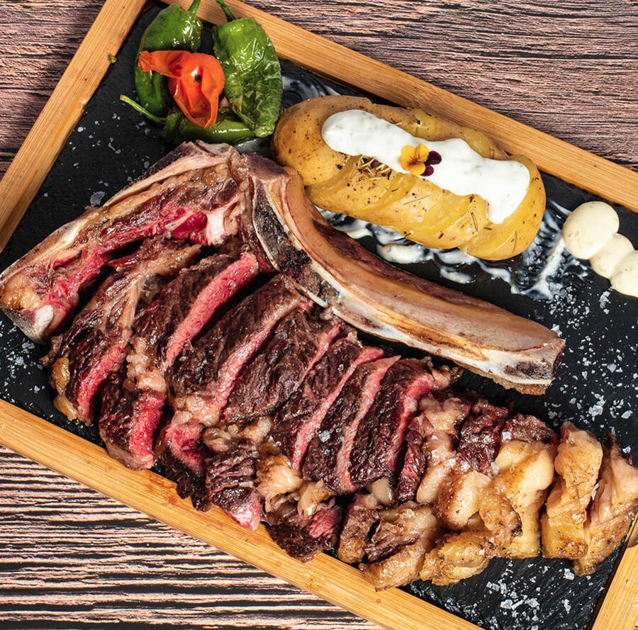 Cote de bœuf ‘Premium’ style Frisona (1.000gr env.) Environ 40 jours de maturation ............... Environ 70 €